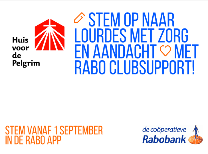 Dus, bent u lid van de Rabobank: kijk dan of u in uw regio een Lourdesgroep kunt steunen met uw stem. Het Huis voor de Pelgrim is gevestigd in Maastricht en doet daarom mee in de regio Zuid-Limburg West.